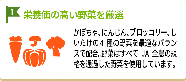 理想は幼少期から与えること。体を作る大事な時期こそ良質な自然の栄養素を補給したいものです。野菜の栄養素を加えることにより、小さい時から元気でいられます。